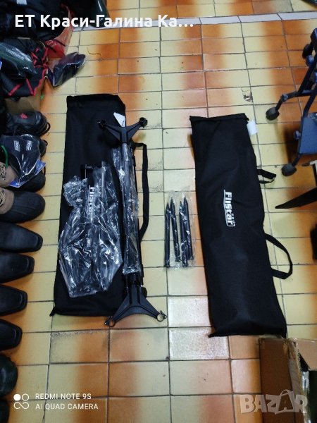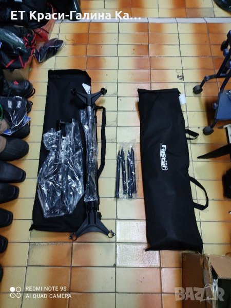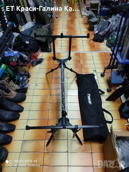 Шаранджийска стойка за три пръчки с възможност бързината да се ползва отделно.Дължина от80 до 135 см , висока от40 до 67 см.Бъзибар 50 см.