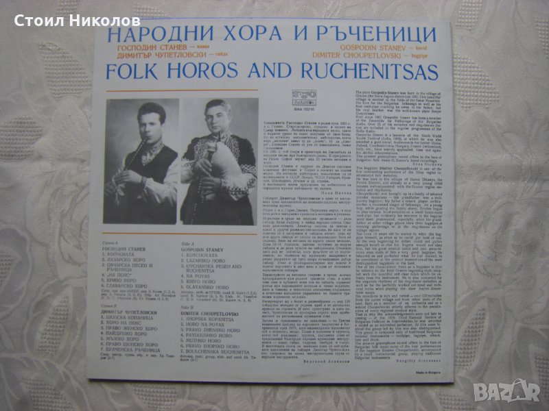 Грамофонна плоча - ВНА 10216 - Господин Станев - кавал, Димитър Чупетловски - гайда. Народни хора и ръченици