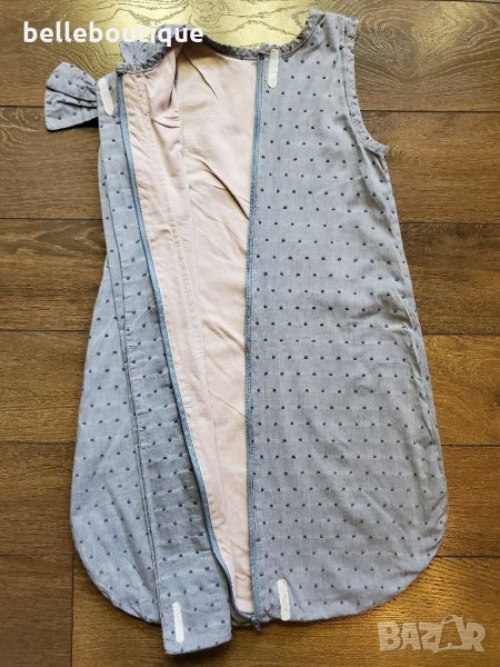 Летен спален чувал за бебе 70 см. от колекцията на испанската детска марка Verthbaudet. Чувалът е идеален за топлите пролетни и летни дни. Двуслоен, без ръкави, тази комбинация го прави не само дишащ, но и мек, и удобен. Спалният чувал има цип отпред и разкошна стилна панделка. Чувалът е като чисто нов, използван е само няколко пъти.