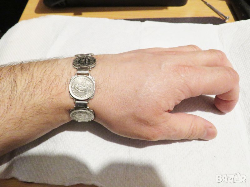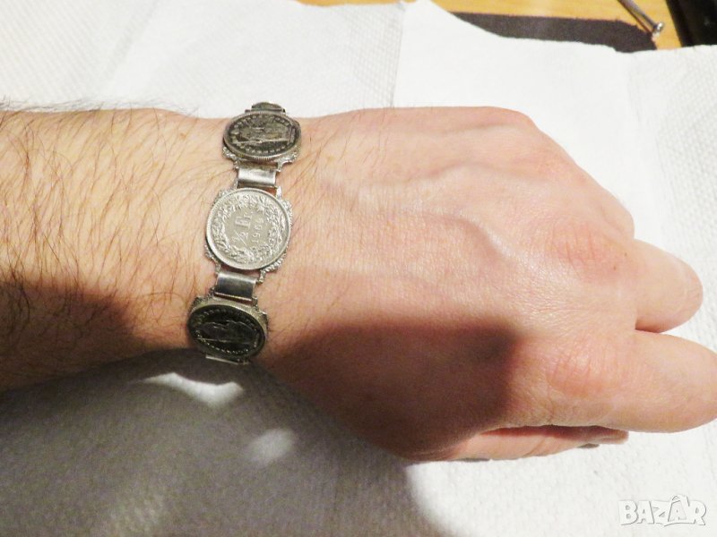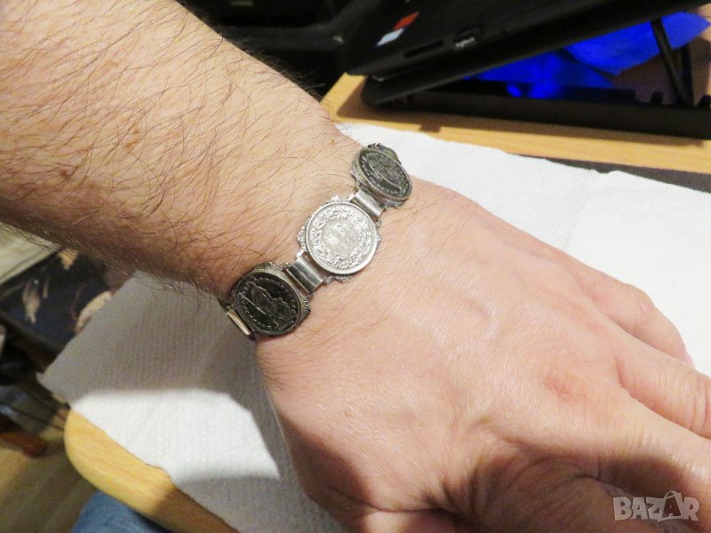 масивна мъжка сребърна гривна с швейцарски 1/2 франкове 1968,1969, 1970 г сребро