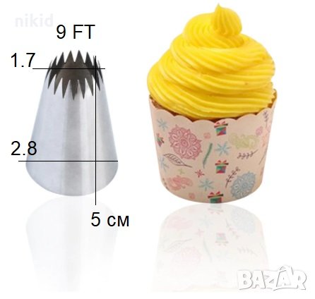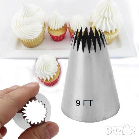 9FT ОСТРИ ЗЪБЦИ толумби толумбички голям накрайник за пош дюза украса торта декор → Обява 31688031