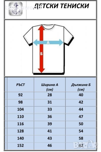 Таблица с размери в см е прикачена към снимките на продукта!!!