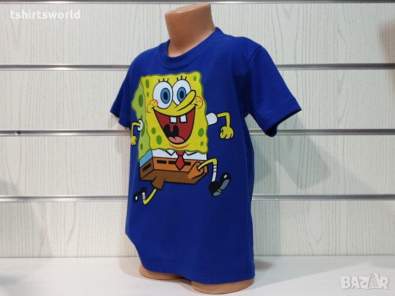 Нова детска синя тениска с дигитален печат Спондж боб, SpongeBob
