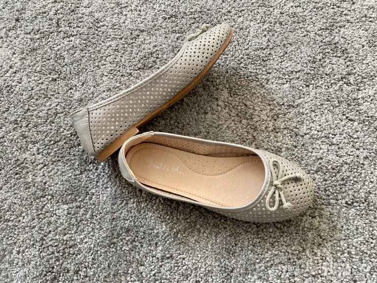 Кокетни балеринки Nelli blu, носени веднъж или два пъти за парти, съхранявани в кутия. Следи от употреба само по подметката. Размер 33. Цена 20 лв.