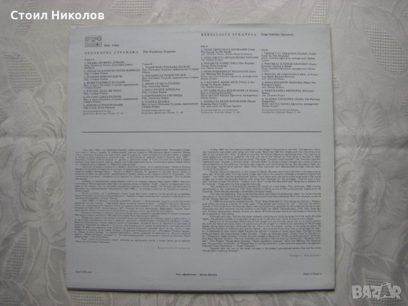 Грамофонна плоча - ВНА 11033 - Калинка Згурова - Непокорна Странджа