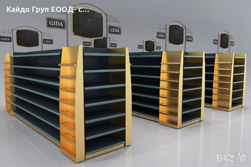 Проектиране и изработка на цялостно търговско обзавеждане и брандиране за магазини по размери и модели по избор на клиента.