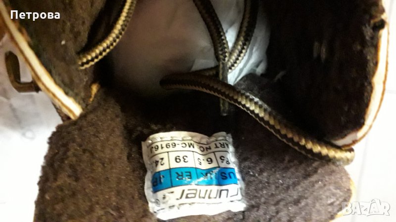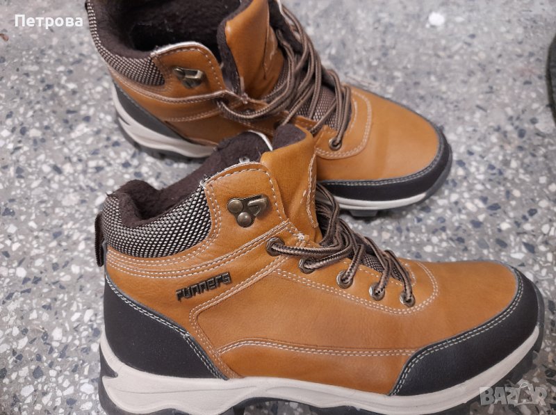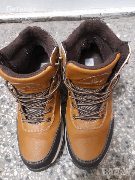 Боти, които са подходящи както за момчета, така и за момичета. Здрава и удобна обувка, която ще ви осигури спокойствие, независимо от времето навън. Ботите са подплатени с полар. Подметката е солидна и с дълбок грайфер, за да осигури максимална стабилност при зимните условия. Обувани броени пъти. В отлично състояние.