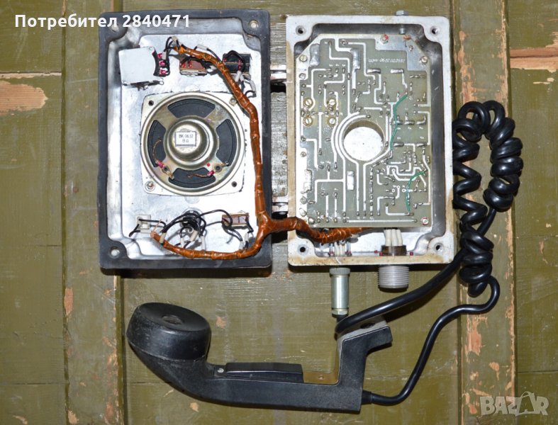 Свързочен блок, бордова апаратура от бойна машина. Видимо изглежда здрав, без липси и щети, но не даваме гаранция за работа. Комплектован е с телефонна слушалка с комутатор.