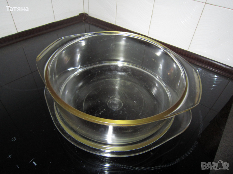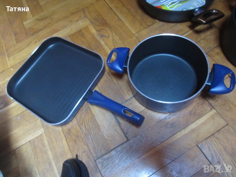 Снимка -11/комплект 2бр плитки тигани и един висок/;диам-28и висок-7см;диам.-24 и висок-11см / С ХАРТИЕНИТЕ ЕТИКЕТИ НА ДЪНОТО - ЦЕНА -45лв за брой;диаметър- 20 и висок- 12см - /С МАЛКИЯ БЯЛ ЕТИКЕТ/ -40лв Дълбочината позволява да се ползва и като тенджера.