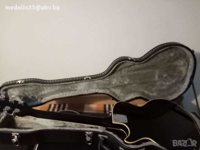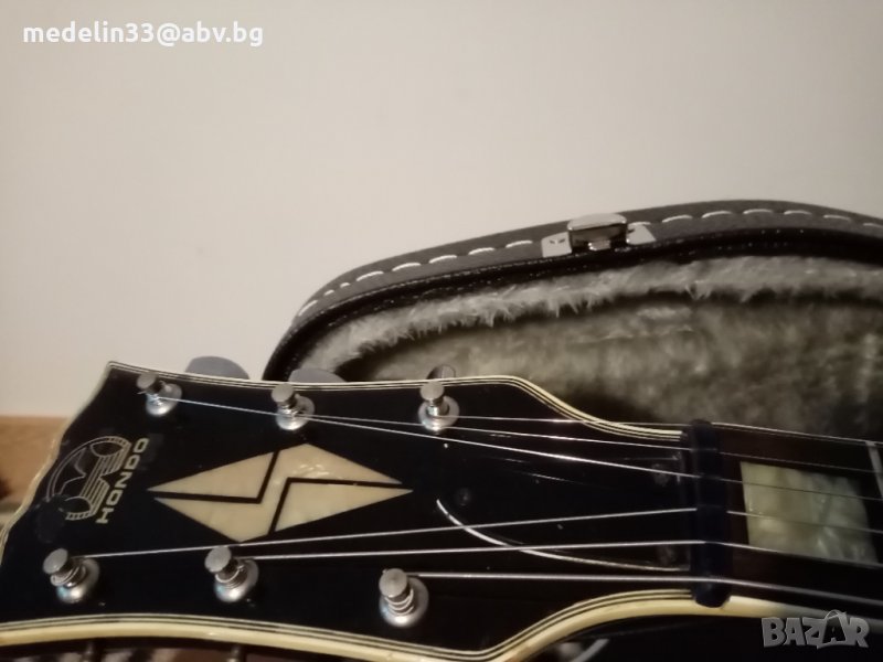 Стара японска китара Hondo Made in Japan 1970 копие на Gibson Les Paul Custom Black Beauty.Тялото е плътно изцяло от махагон с кленов топ.Китарата е много запазена,била е на колекционер,няма износени прагове,прав гриф,нисък екшън,всичко работи вкл.тръсрода ,електрониката,ключовете.Състоянието е такова,както е произведена,никакви промени и ъпгрейди не са правени.
