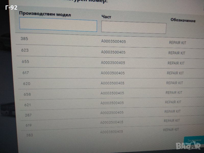 A0003500405**NEU**LKW**РЕМОНТЕН КОМПЛЕКТ ЗА" ЛЯСТОВИЦАТА" НА**Mercedes-Benz**( 1625-8, 1720, 2527