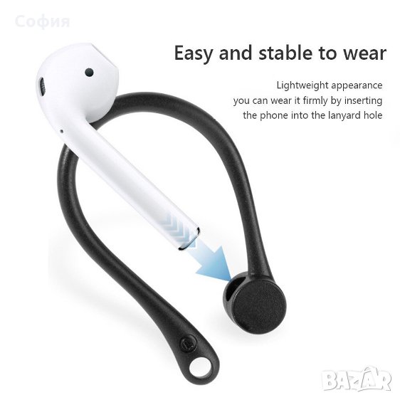 Чисто нови кукички за слушалки Apple Airpods и други подобни модели, изработено от висококачествен силикон, който предотвратява падaне и изгубване на вашите слушалки. Материалът е изключително мек и приятен за носене дори и през целия ден.