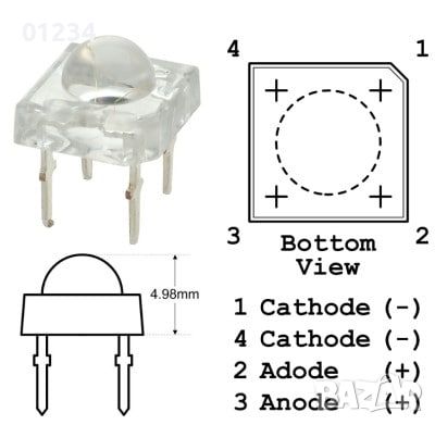 Червени светодиоди за стопове 7.62 х 7.62 мм, 90 градуса, 1.0-3,6lm/70mA