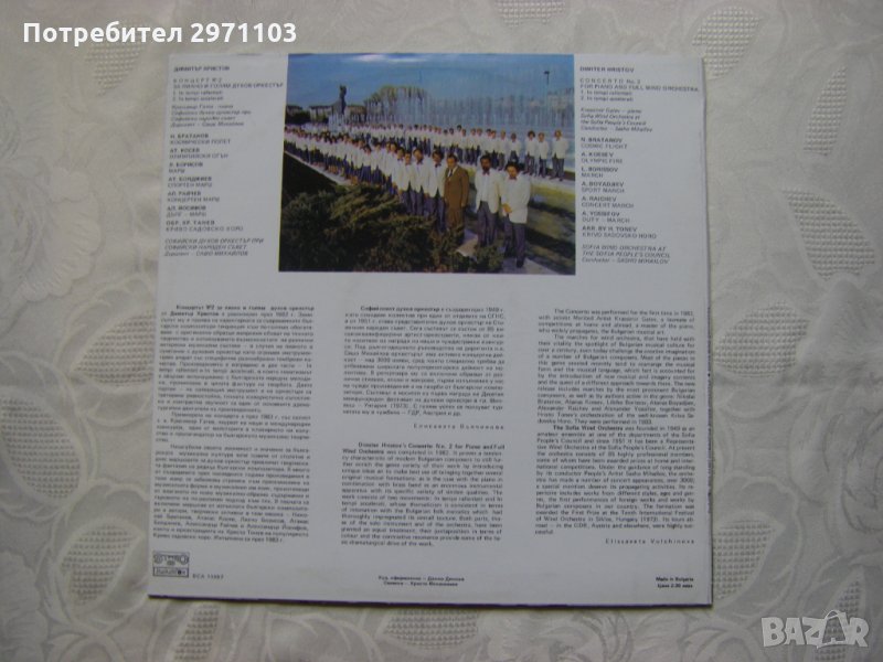 Грамофонна плоча - ВСА 11497 - Софийски духов оркестър при Софийски народен съвет, диригент Сашо Михайлов