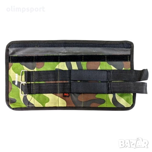 Тежести за ръце и крака MAXI, С празни джобове, 1-10 кг (200297) Тежести, подходящи за упражнения за ръце и крака. Всяка тежест съдържа пет празни джоба. Дават възможност за промяна на теглото чрез добавяне и премахване на пълнеж от джобовете. Тежестите се пристягат чрез велкро лепенка, което ги прави подходящи за различни упражнения. Подобряват отскока и бързината на ръцете и краката при различни видове спортове. Предоставят възможност за допълнително натоварване. Ширина на всяка тежест - 44 см. Височина на всяка тежест - 20 см. Цената е за комплект от две тежести. Тегло празни тежести - 230 г. Камуфлажен цвят.