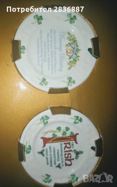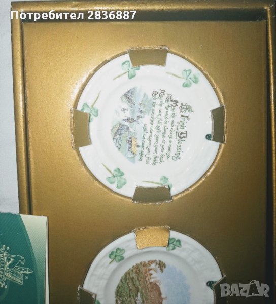 Уникална колекция от ръчно изработени декоративни мини чиниики с нарисувани на тях ирландски благословии и пожелания. Колекцията е в отлично състояние, с оригиналната опаковка може да се закачат на стена и са със сертификат за качество. Диаметъра на чинииките е 8см.