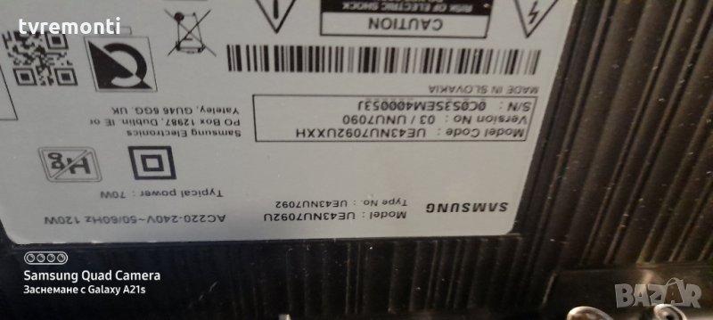 Mainboard KANT-SU (NU7090) BN9648320A Борда е гарантирано работещ Демонтиран от телевизор Samsung UE43NU7092 със счупен дисплей CY-NN043HGNV6H тествана от нашия техник