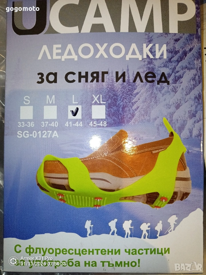 Това са приставки за обувки за сигурно и безопасно ходене по сняг, лед и кал.