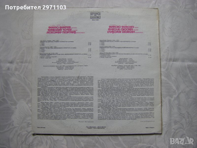 Грамофонна плоча - ВСА 11057 - Минчо Минчев - цигулка, Николай Чочев - тромпет и Любомир Георгиев - виолончело с Инструментален ансамбъл "Студио Концертанте", диригент Васил Казанджиев