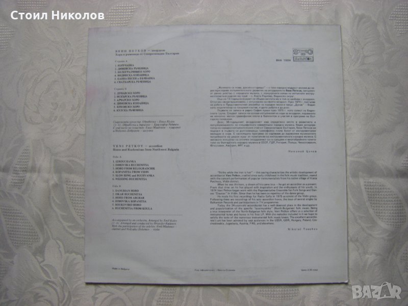 Грамофонна плоча - ВНА 11034 - Вени Петков, акордеон. Хора и ръченици от Северозападна България