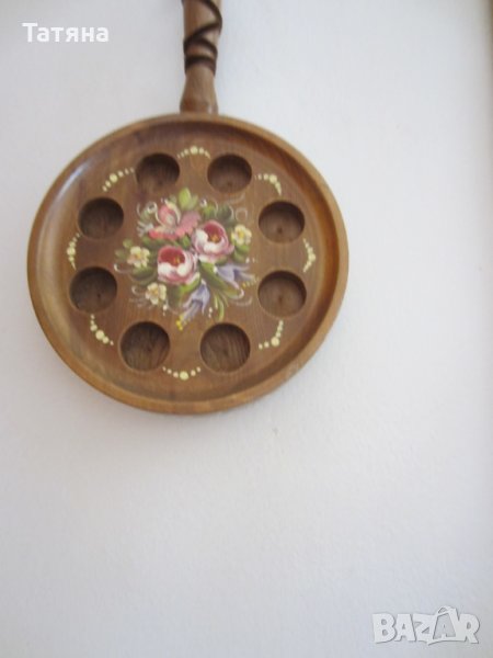 СНИМКА 13 ;Дървена поставка за яйца /бук ;ръчно декориран; масивен;/За стена и за маса.Цена 20 €