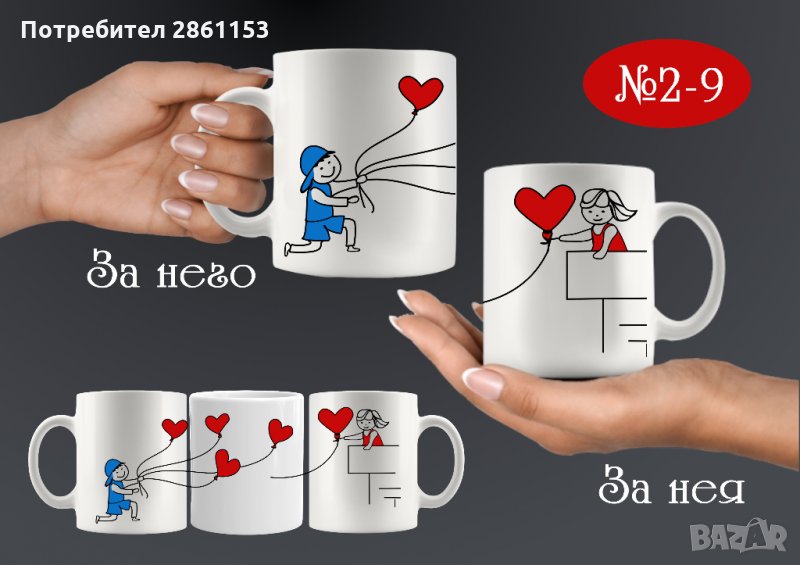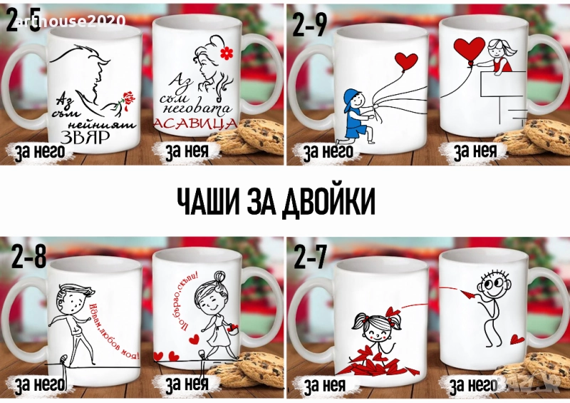 Комплект от 2 чаши за двойки,за него и за нея-подарък за всеки празник