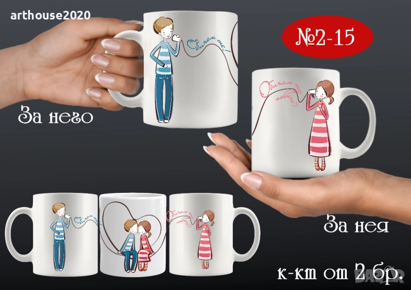 *Цената на комплектите за двойки (2 бели чаши)- 15.70лв.(8.00евро)