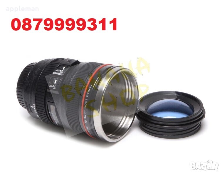 – капаче спомагащо за запазване на топлината на Вашата напитка в термо чаша обектив Canon