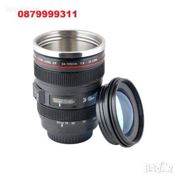 Тази термо чаша е представител на 4-то поколение чаши – обектив, като серията се отличава с отлична термоизолираща функция и уникален дизайн с прозрачен капак, който осигурява възможността да надзърнете в чашата, за да видите колко за пиене ви остава. Тази термо чаша пресъздава още една вариация на истинския обектив на Canon EF 24-105, както би изглеждал без допълнителните си накрайници, около стъклената леща.