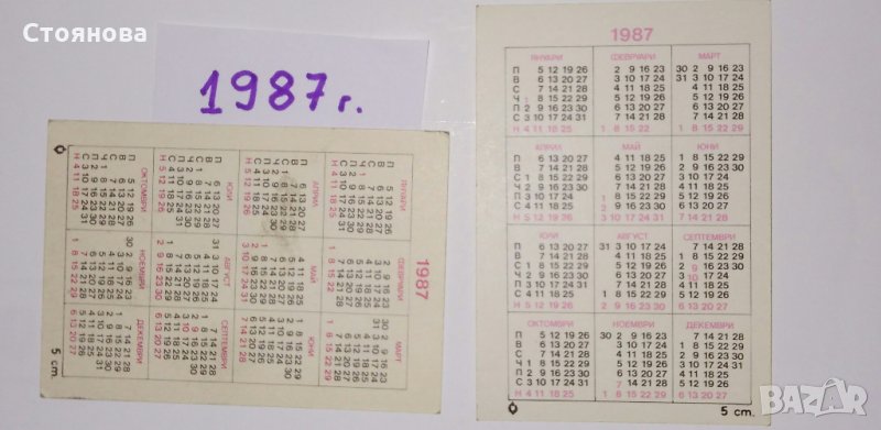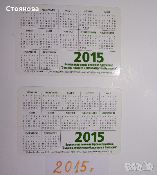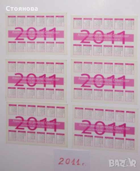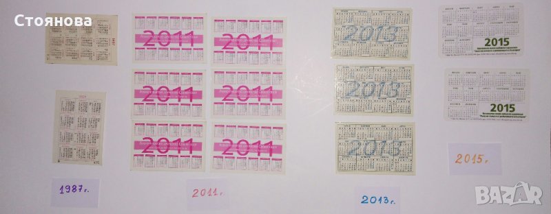 Продавам лот стари календарчета с животни, птици и риби по години в много добър вид: 1) Календарчета от 1987 г. - 2 броя, Цена - 4 лева за двете; 2) Календарчета от 2011 г. - 6 броя. Цена - 9 лева за всичките 6 броя; 3) Календарчета от 2013 г.- общо 4 броя, от които с щуката са 2 броя еднакви. Цена - 6 лева за четирите. Цена - 4.50 лева за трите. 4) Календарчета от 2015 г. - 2 броя. Цена - 3 лева за двете.