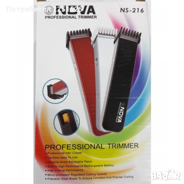 Чисто нов безжичен професионален тример/машинкамодел NOVA NS-216 за подстригване и бръснене на коса, тяло, брада и мустаци, който разполага с 3 накрайника/приставки- 3/ 6/ 9 мм. Тримера работи на батерия, но може да работи и когато е включен в електрическата мрежа. Подходящ е както за професионална, така и за домашна употреба. Перфектен избор за всеки, който иска да има поддържана и елегантна визия, както и перфектен подарък за любим човек. Идеален спътник