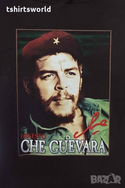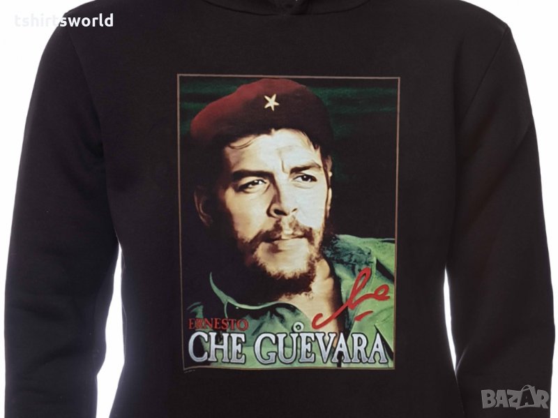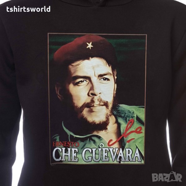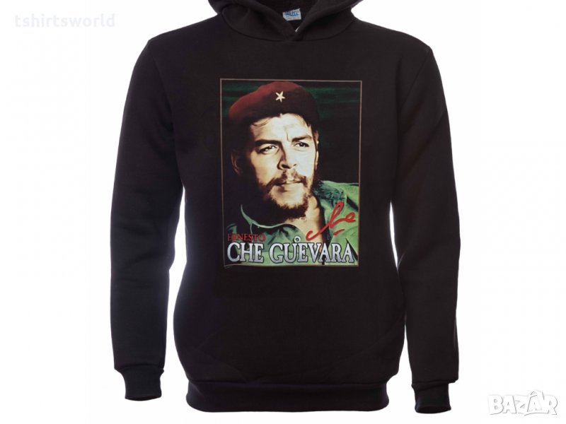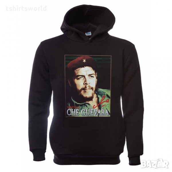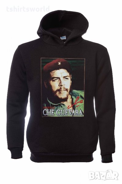Страхотен нов мъжки суичър в черен цвят с качулка, две джобчета и дигитален печат на революционера Че Гевара. Произведен в България под марката PRINTEX от висококачествен 100% памук - триконечна пенирана вата с кардировка, което го прави изключително топъл и желан от нашите дългогодишни клиенти. Моделът е подходящ за пролетния и есенно-зимният сезон, има ластични маншети на китките и ханша, запазващи топлината. Разполага с мека подплата и два отворени джоба в страни. Свободната кройка го прави подходящ както за спорт, така и за ежедневно носене с дънкови панталони. Марката PRINTEX от години се слави със своите топли и качествени суичъри.