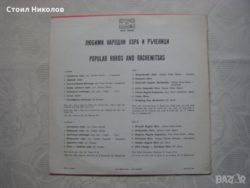 1. Рупченско хоро - сол. Петко Радев (кларинет), 2. Дайчово хоро, 3. Кюстендилска ръченица - сол. Емил Колев (акордеон), 4. Криво Садовско хоро - сол. Петко Радев (кларинет), 5. Плевенска копаница - изп. Орк. "Хоро" - Русе, 6. Елено моме, 7. Сватбарска ръченица (Д. Илиев)