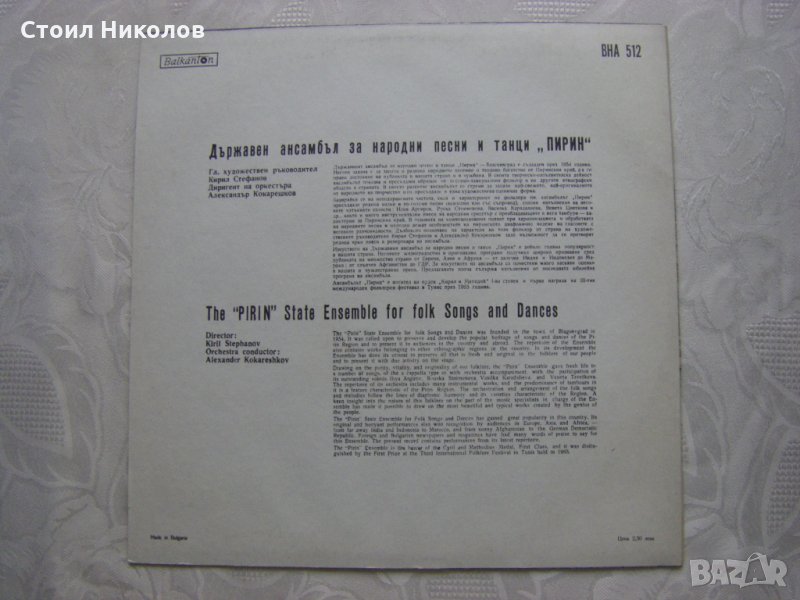 Грамофонна плоча - ВНА 512 - ДАНПТ Пирин