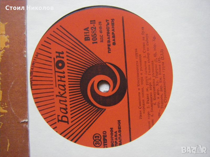 Грамофонна плоча - ВНА 10582 - Иван Симеонов и Конушенската народна група - Народни песни, хора и ръченици