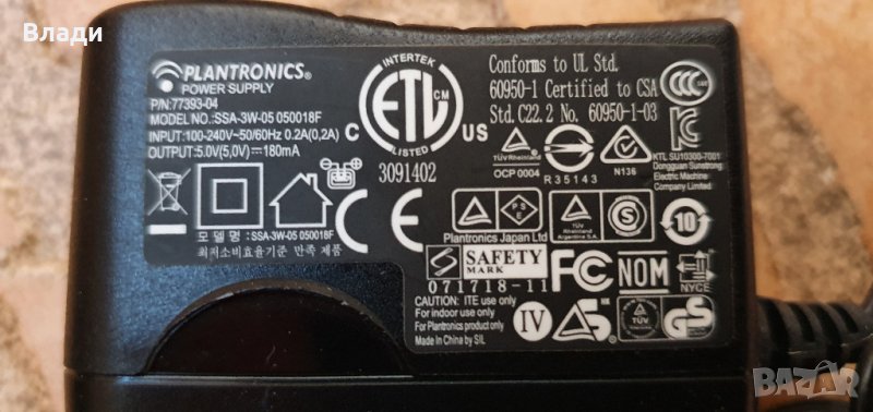 5. Зарядно Plantronics 5V 180mA Цена: 6 €