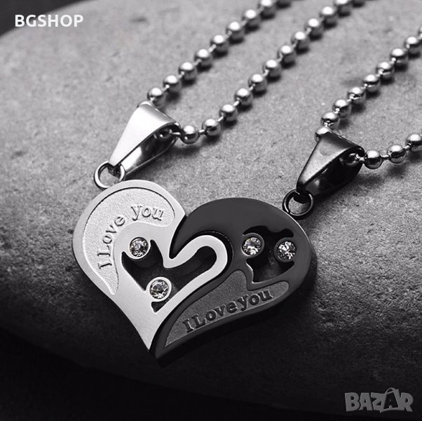 Две свързани колиета, изработени изцяло от медицинска стомана 316L. Гравирани с надпис "I Love You". Моделът представлява 2 части и когато двете колиета се съединят образуват стилизирано сърце.