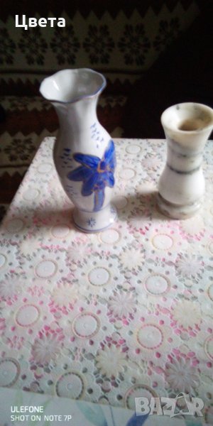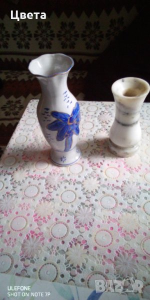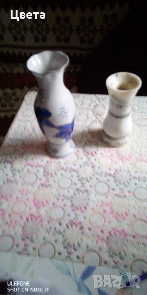 Порцелановата ваза е на цена 8 лева а височина 22 см. А мраморната на цена 15 лев с височина 16 см.