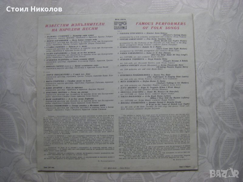 Грамофонна плоча - ВНА 10579 - Известни изпълнители на народни песни