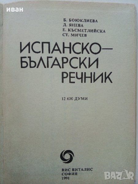 Испанско - Български речник - Б.Боюклиева,Д.Янева,Е.Късметлийска, Ст.Мичев - 1991 г. → Обява 31764587