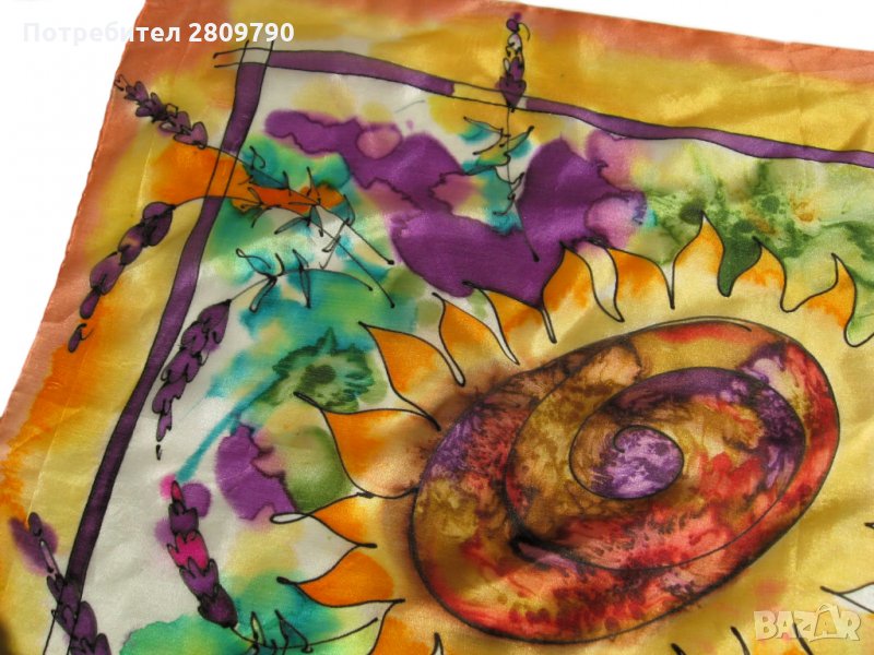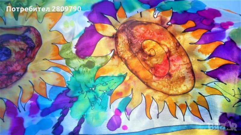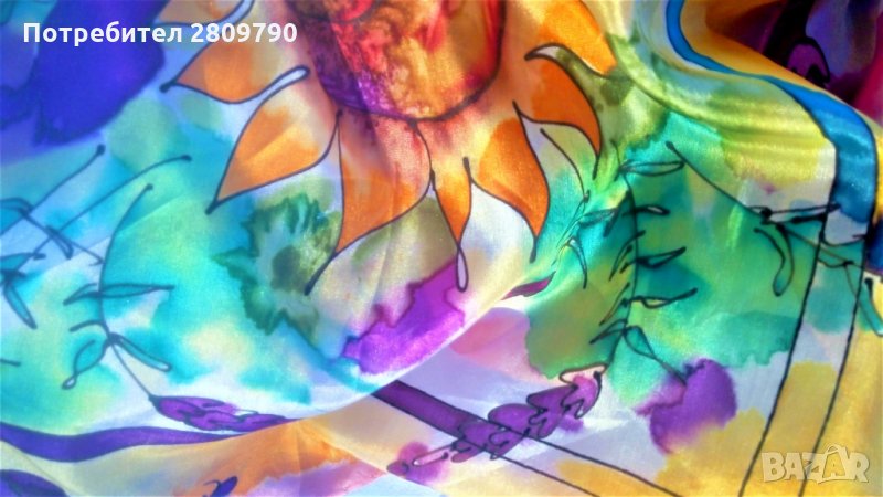 Многоцветный, яркий, сочный, в акварельной технике свободной росписи шелка. Подойдет для шикарного подарка, как сувенир из Болгарии , подарок маме, подруге, сестре, подарок на день рождения, подарок на Рождество.