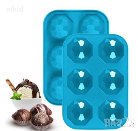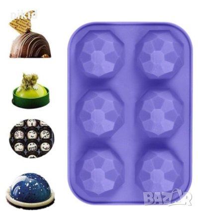 6 Диамантени полу полусфери сфери полукръг силиконов молд форма гипс сапун шоколад украса шоко бомби → Обява 31766434