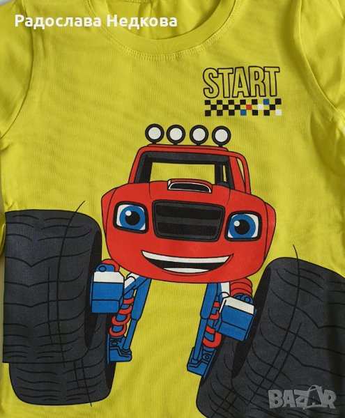 Страхотна памучна блуза за момче с апликация на Пламъчко отпред в зелен цвят. Налични размери - 122 см.