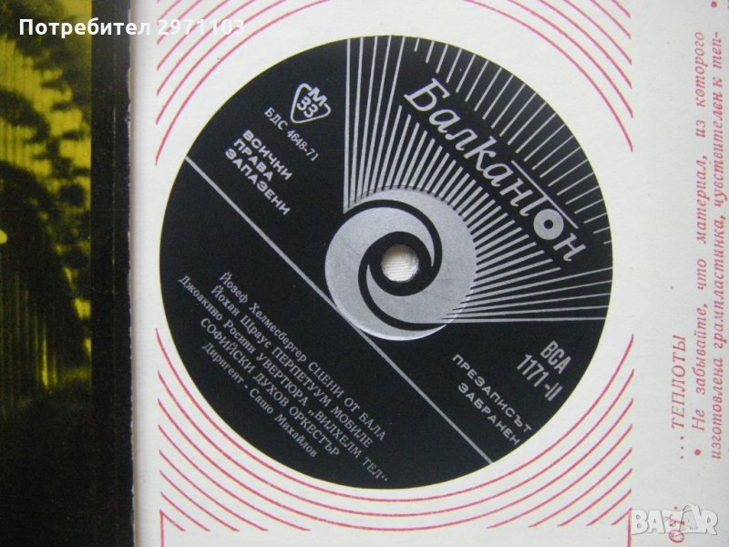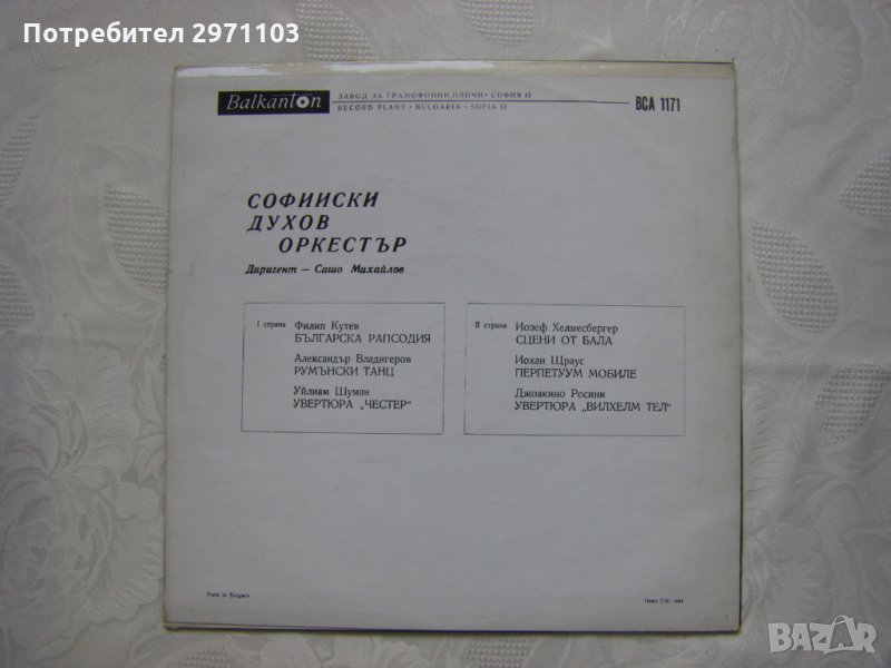 Грамофонна плоча- ВСА 1171 - Софийски духов оркестър. Диригент - Сашо Михайлов