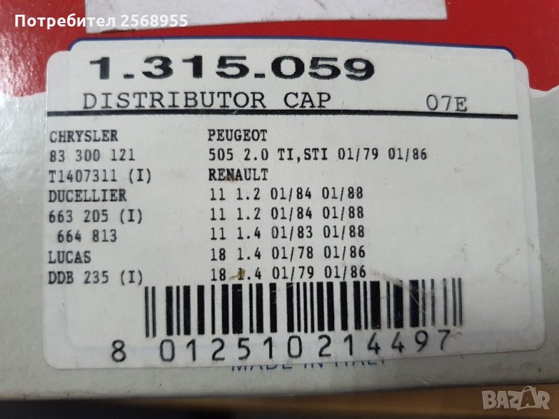 1315059 EPS КАПАЧКА ДИСТРИБУТОР, ДЕЛКО PEUGEOT CITROEN RENAULT 1966-1998 OE 594128 OE 5465604P