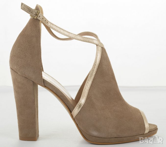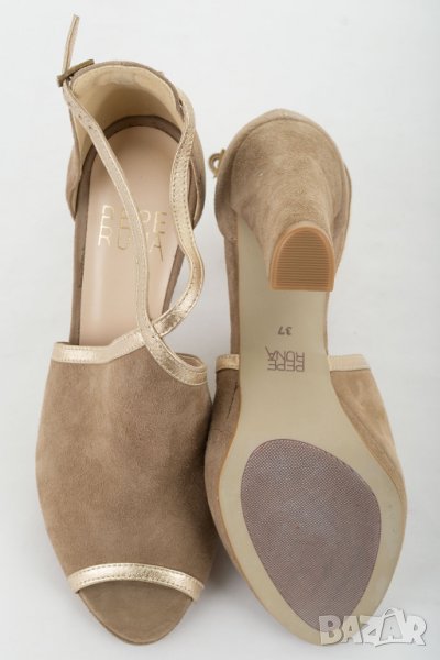 Дамски велурени сандали в цвят капучино и златисто марка Peperuna - 37
