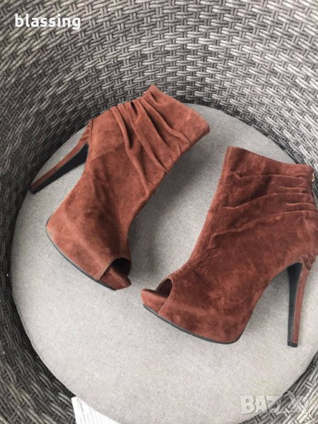 1. Кафяви боти с отворени пръсти, № 36,ток 12 см- 44 лв.