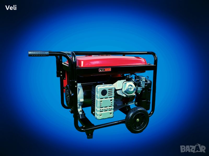 Новите 9.0KW бензинови четиритактови генератори BULLMAX, за монофазен и трифазен ток с вградена фабрична автоматика в генератора и управляващо напълно автоматично старт-стоп табло, които служат за автоматичното стартиране/спиране на генератора при отпадане/ възстановяване на основното ел. захранване. Този модел генератор има вградена букса с която при закупуване на контакторна кутия генератора става напълно автоматичен. Гарантирано безотказно и без никаква човешка намеса. При прекъсване на тока в автоматичното старт-стоп табло, управляващо генератора има монтиран автоматичен таймер, който прави три последователни опита за стартиране на генератора. Автоматичният таймер, след възстановяване на електричеството гаси автоматично генератора след 30 секунди. В управляващото табло има вградена изцяло автоматична двупосочна контакторна система, не позволяваща на генератора при отпадане на нормалното електричество и при включване на режим генератор да се върне ток към електропреносната мрежа. И обратно – при възстановяване на нормалното електричество спира автоматично подаването на ток от генератора към електрическото табло. ВГРАДЕНО АВТОМАТИЧНО ЗАРЯДНО ЗА АКУМУЛАТОРА. При нашите генератори автоматичното старт-стоп табло следи за нивото на заряд на акумулатора и при нужда го дозарежда до нужния заряд, за да може всеки път генератора да стартира безупречно. Когато генератора не е превключен на режим автоматика, паленето на генератора е с ключ, който е на управляващото табло. Генераторите са с медни ротори и статори и са оборудвани с автоматичен смукач. Бензинов Двигател VТR 800 с въздушно охлаждане, 16 конски сили. Работна честота: 50 Hz. Вграден AVR /Automatic Voltage Regullator/.Автоматичен предпазител против претоварване на генератора. Магнетен стартер и автостартер с ключ и акумулатор. Транспортна рамка с колела и дръжки за по-лесно предвижване на генератора. Генератора има вграден дигитален дисплей показващ изходящият моментен волтаж, херцовете и отработените моточасове. 3 броя изходи за 230 V и един изход 380V + 12 V. Нивото на шума е 69-72 dB. Разход: 450 грама бензин на киловат час при пълно натоварване. Размерите му са: дължина 68 см., ширина 51 см. и височина 55 см. Тегло бруто с автоматиката 110 кг.Гаранционен и след гаранционен сервиз.