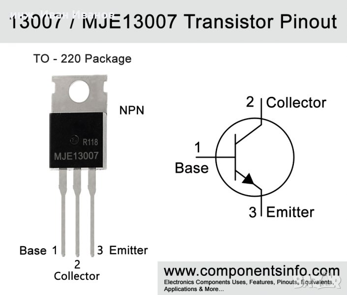 MJE13007 400V, 8A, 80W корпус TO-220C