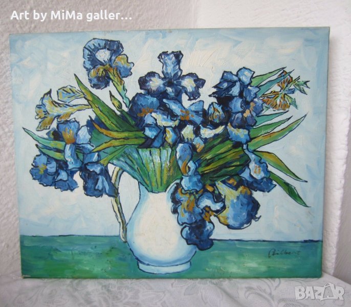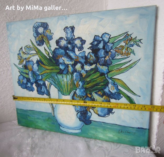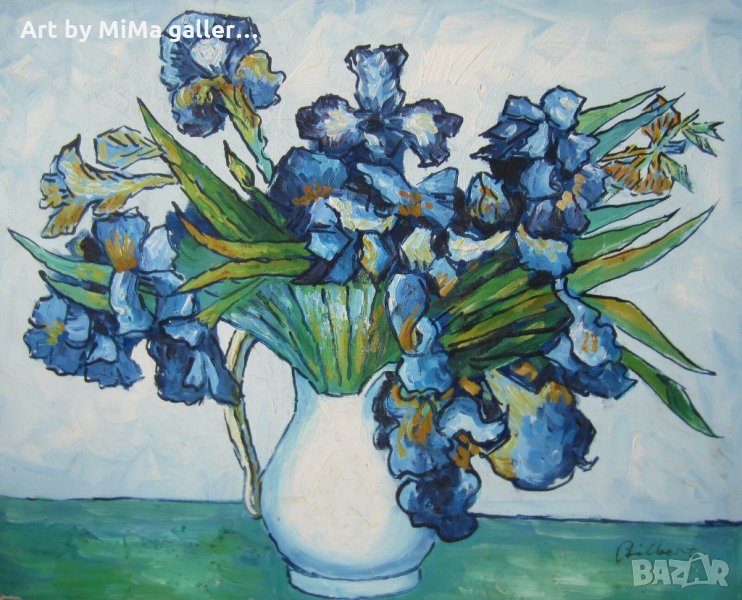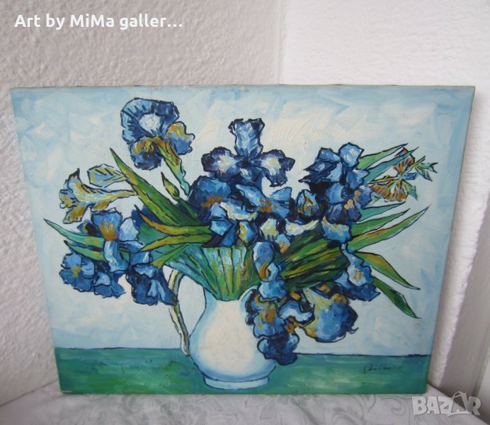 Ириси 40х50 см, Сини цветя, картина, irises oil on canvas painting → Обява 31781028